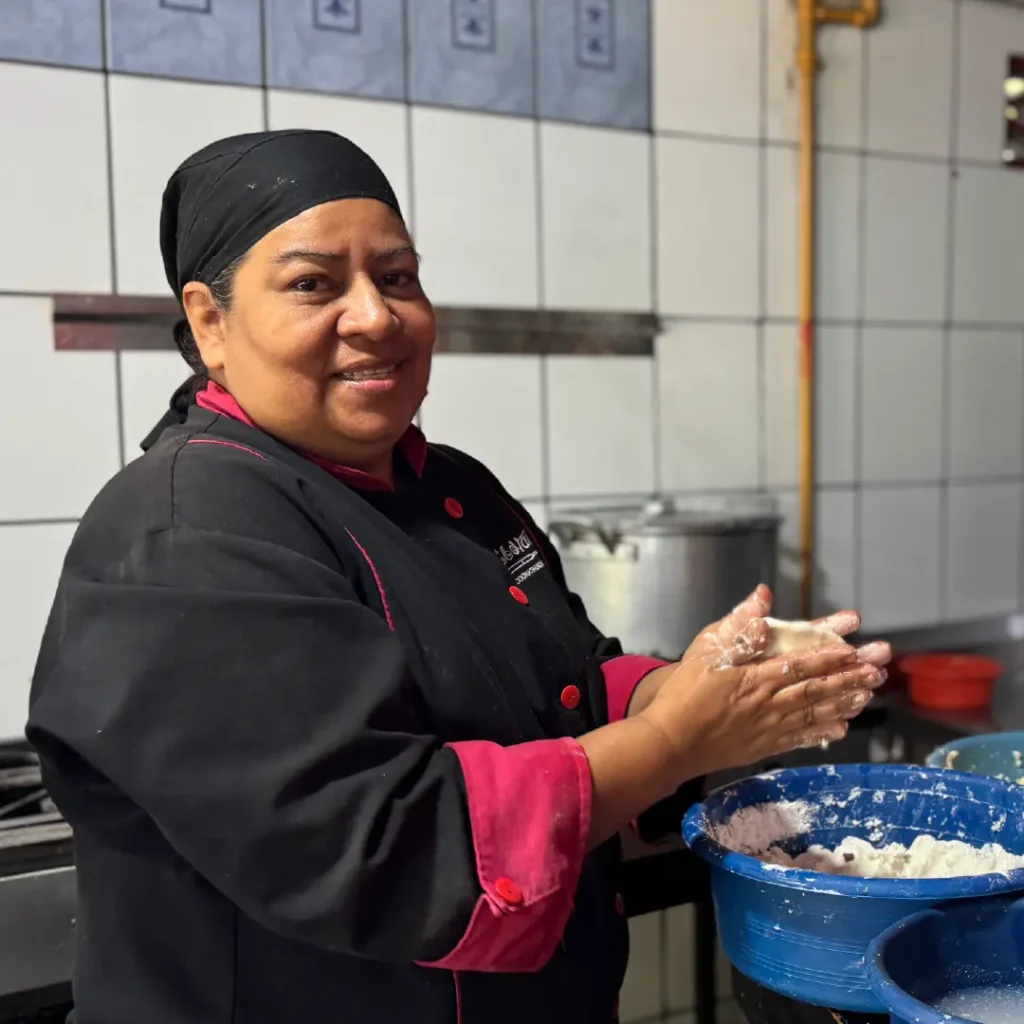 Su historia no comienza con un plan de negocios ni con formación técnica, sino con necesidad, intuición y trabajo constante. “Yo no tenía conocimiento de cocina, no tenía conocimiento de pupusas… mi suegra era la que hacía y yo le ayudaba”, recuerda.