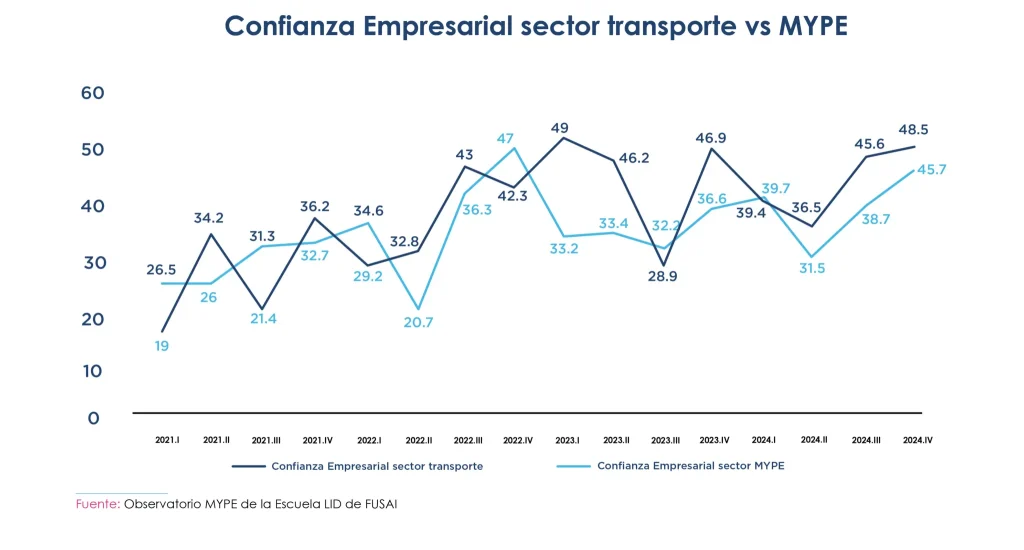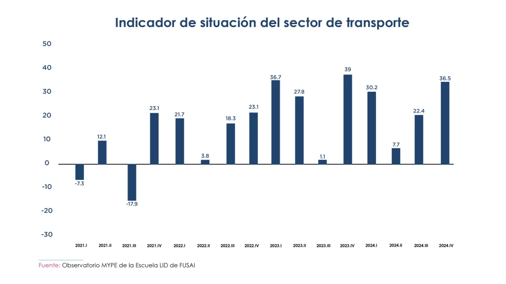 Aunque el sector transporte se mantuvo como el más confiado dentro del universo MYPE, su Indicador de Situación, que evalúa el desempeño real de las unidades económicas, cayó a 36.5 puntos, 2.5 unidades menos que el año anterior. Es decir, los empresarios creen en el futuro, pero enfrentan más dificultades en el presente.