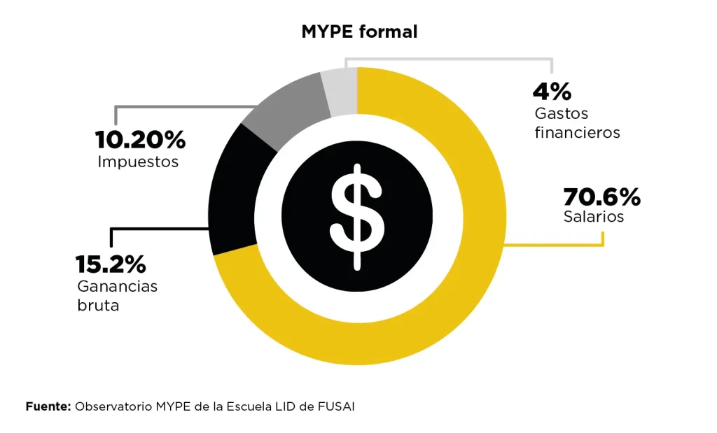 Estimaciones del Observatorio MYPE señalan que en 2023 el sector aportó 43% del PIB, equivalente a US$13,500 millones a precios corrientes (con base en cifras del BCR). Pero el dato que más revela el “ADN” del sector es otro: entre 2020 y 2023, en promedio, el 82.5% del Valor Agregado Bruto (VAB) de la MYPE se destinó al pago de salarios.
